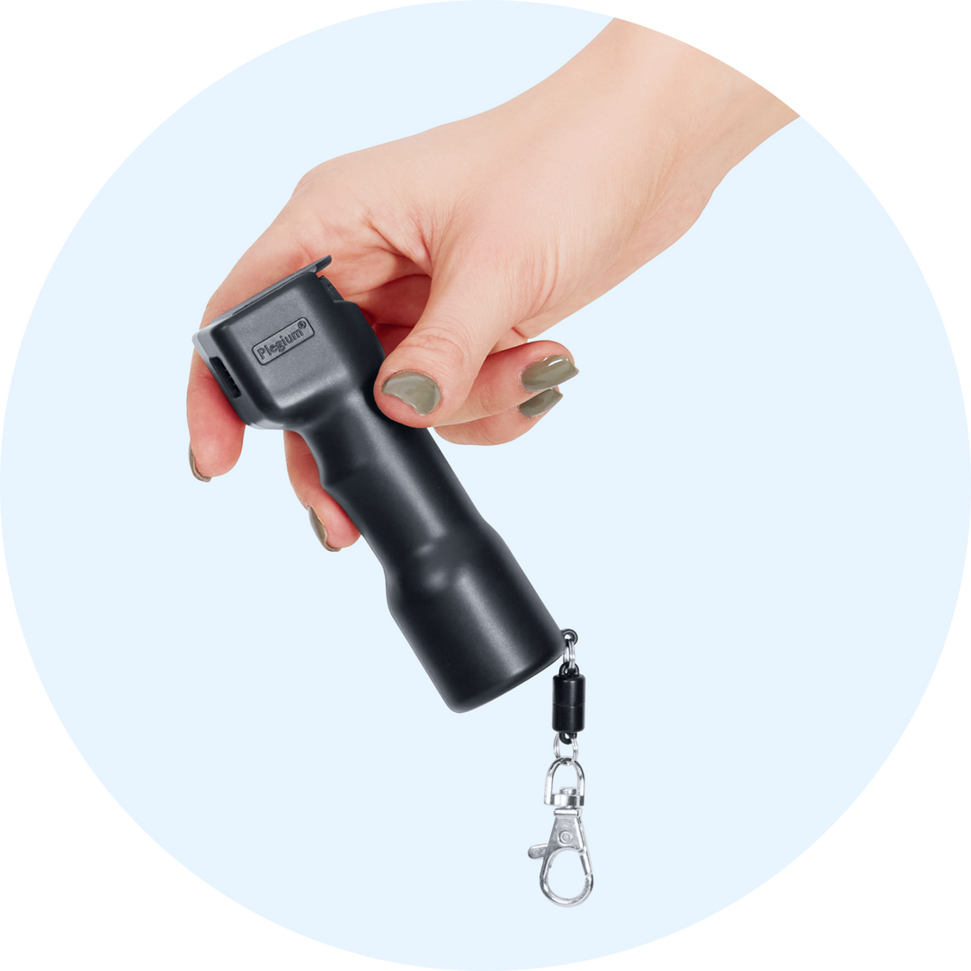 Plegium Basic Försvarsspray är en kompakt , laglig och kraftig ögonirriterande mentorbaserad försvarsspray med röd färg. Sprayen har vridsäkring, 3 meter räckvidd, innehåll finns för många gärningsmän samt magnetisk separerande nyckelkedja för snabb åtkomst.
